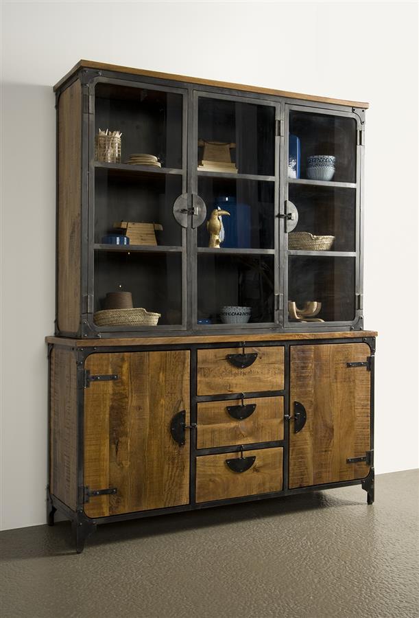 Vitrine Dressoir 5 drs. 3 drws Mango rough mat