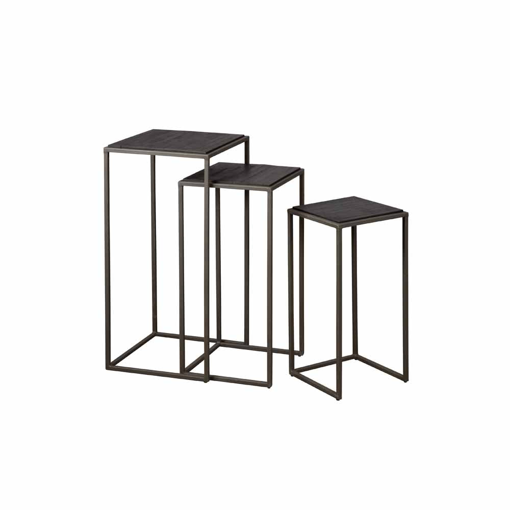 Fanna set of 3 planter set 40-35-30Recycle teak matt black – metal gun grey OP=OP