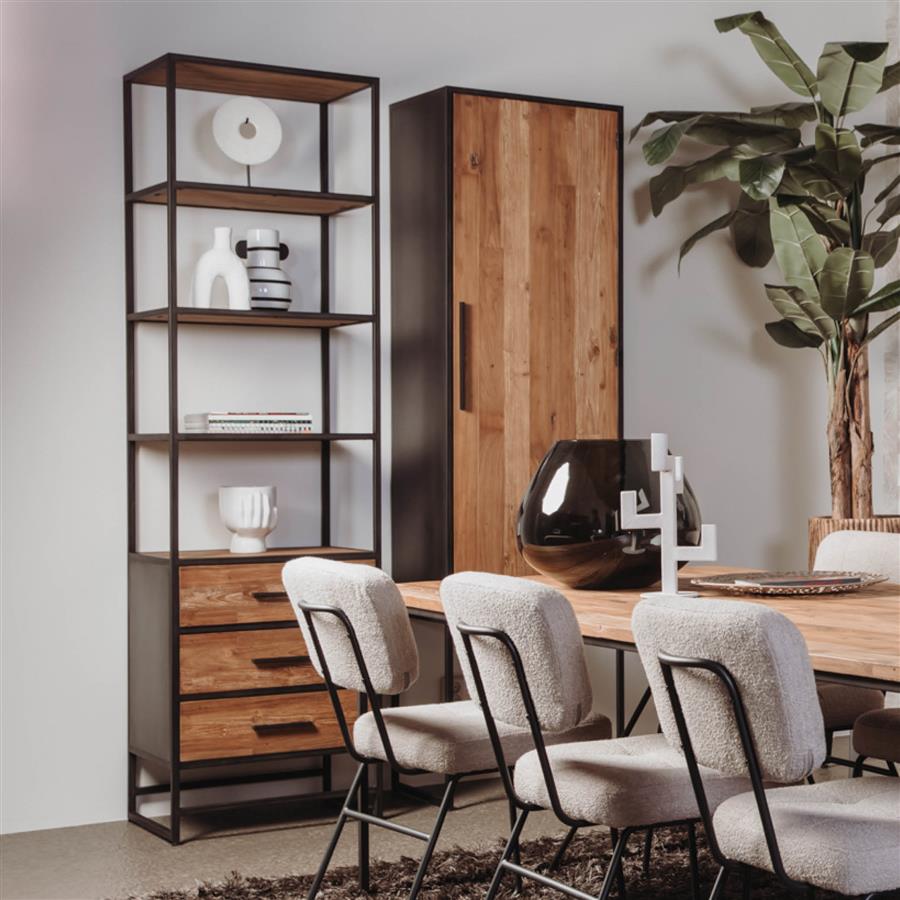 | Kleur bekleding | Dressoir 1 dr. rechts 60x45x220 C 170 Recycled teak – naturel metalen frame |